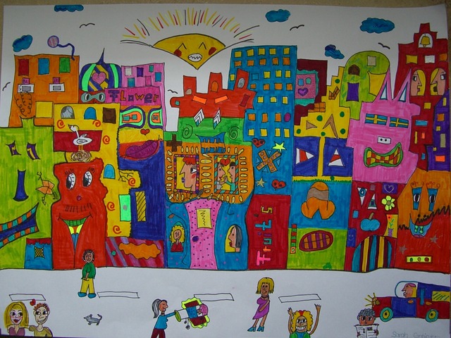 ~Take art walks. Identify a theme of interest. An architecture walk may focus on particular structures such as houses of worship and the meaning reflected in different styles of buildings you encounter. A sculpture walk may follow a map of the city’s historical district, but pay attention to unexpected things your children identify as sculpture. Try a “found art” walk with a camera or sketchbook, capturing what each person on the walk finds interesting. Or take a collage walk, where you and your children pick up objects to use later in an assemblage. If you are going with a group on an art walk you may want to find an expert to lead the walk.