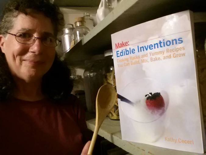 Kathy has written nearly a dozen books and kids in her hands-on workshops make fascinating things. Really fascinating — like a hydraulic Lego 3D food printer, solar baked oatmeal cookies, a light-up paper cat, or a swarm of gliding vibrobots. Better yet, her goal is getting them to come up with their own creations.