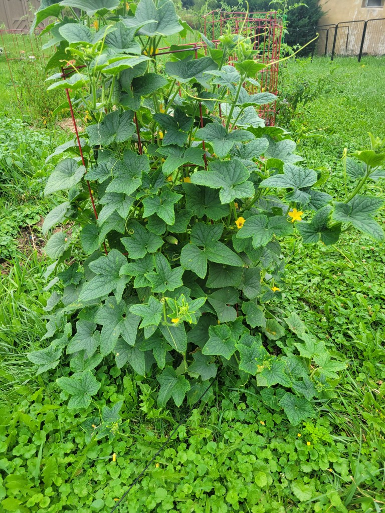 So. Many. Cucumbers. Most days I pick three or four. Yesterday I discovered a few giant ones lurking in the weed-enhanced foliage. They were given to the chickens.