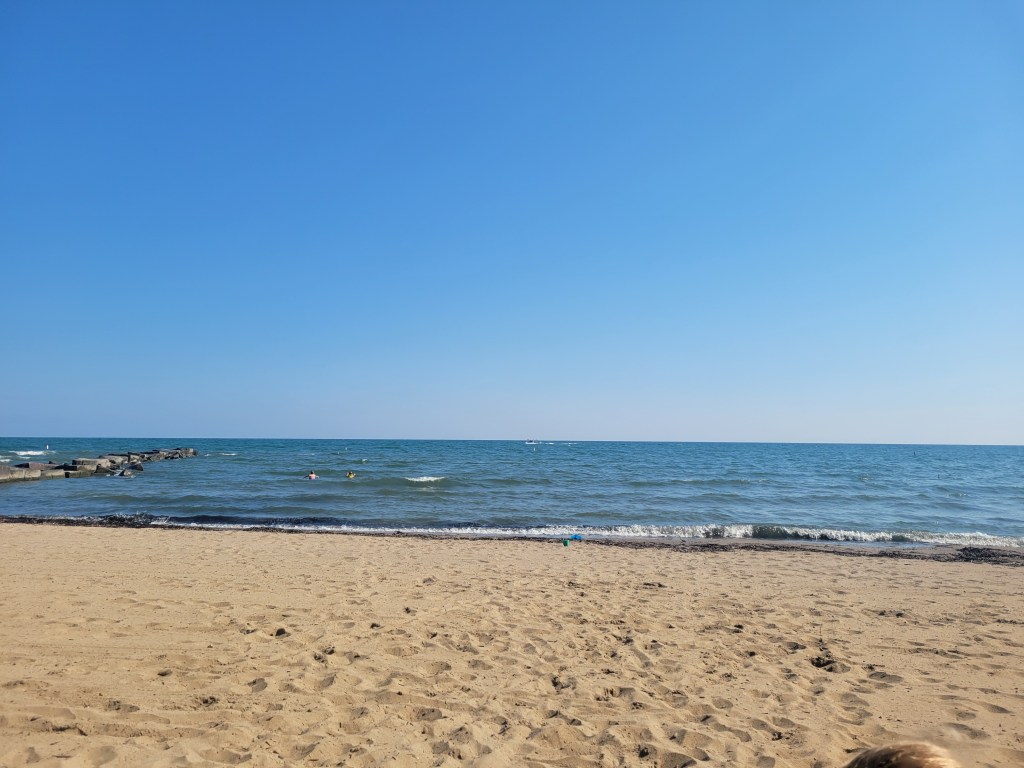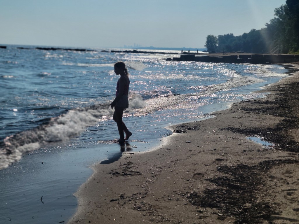 From even a short distance every wet head bobbing up in the water is dark, every happy shout is unintelligible. Time shifts the way it sometimes does. This scene could just as easily be 100 years ago, when Cleveland Metroparks made this beach a public recreation area and summer-weary families came here to cool down. This could be hundreds of years ago, the shoreline rimmed by huge sycamore trees, land crisscrossed by bison trails, with the Erie peoples’ large palisaded villages a short walk away. This could be a thousand years ago, another grandmother sitting near the water’s edge.