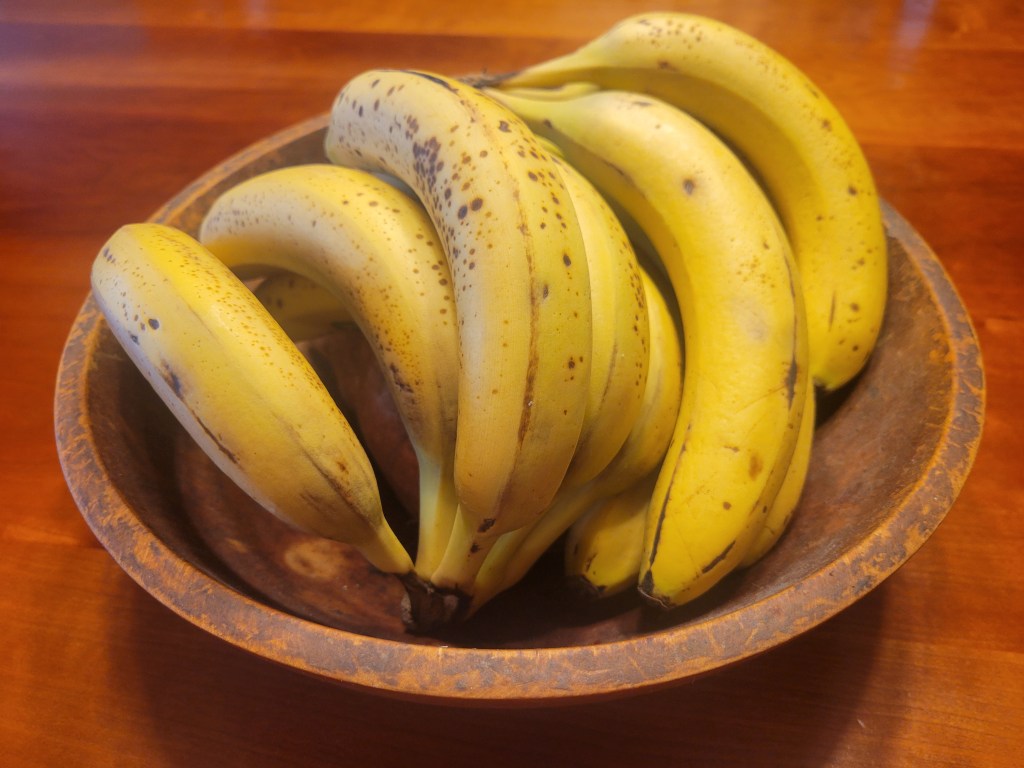 This ancient wooden bowl came to us from generations back. It has always held fruit on the counter.