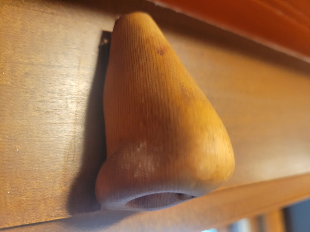There’s too much to show you, but I’ll close by telling you about the spectacular nose at the start of this piece. It was carved by my brother when he was 13 or 14. It has always hung in my kitchen and is one of the things I’d save if there was a house fire.