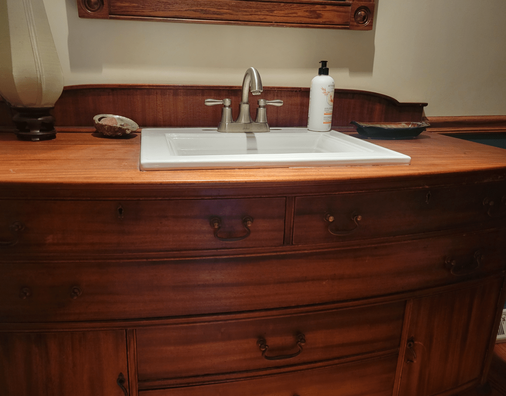 My husband made this substantial bathroom vanity from an old chest of drawers.