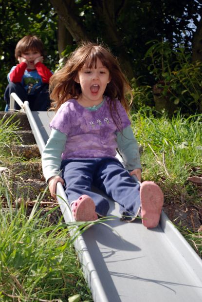A rainy day indoor course might consist of a few chairs to wriggle under, a rope to hop over, four pillows to leap on in a row, three somersaults through the hall, and a quick climb up the bunk bed ladder. Outdoors they can set up a bike, trike, or scooter obstacle course. Mark the course with sidewalk chalk or masking tape. The course may lead them around cones, through a sprinkler, under crepe paper streamers hanging from a tree branch, and on to a finish line. More fun? Setting up obstacle courses on their own.