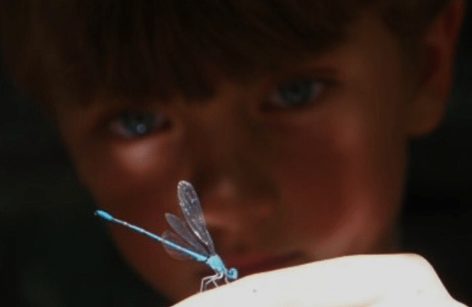 It smelled a bit when the water was stirred up, but that didn’t bother us. My sister and I would crouch near the edge watching insects. Water striders scurried on the surface. Each of their steps made a faint impression in the water as if they walked on gel. Beetles, ants, and the creatures my sister called by the fairytale name nymphs scampered through pondside plants. She liked to let insects climb up her arms. I was impressed, but too squeamish to copy her. Most magical of all were the dragonflies, their huge eyes looking back at us as they hovered on iridescent wings. This seemed like a separate world.