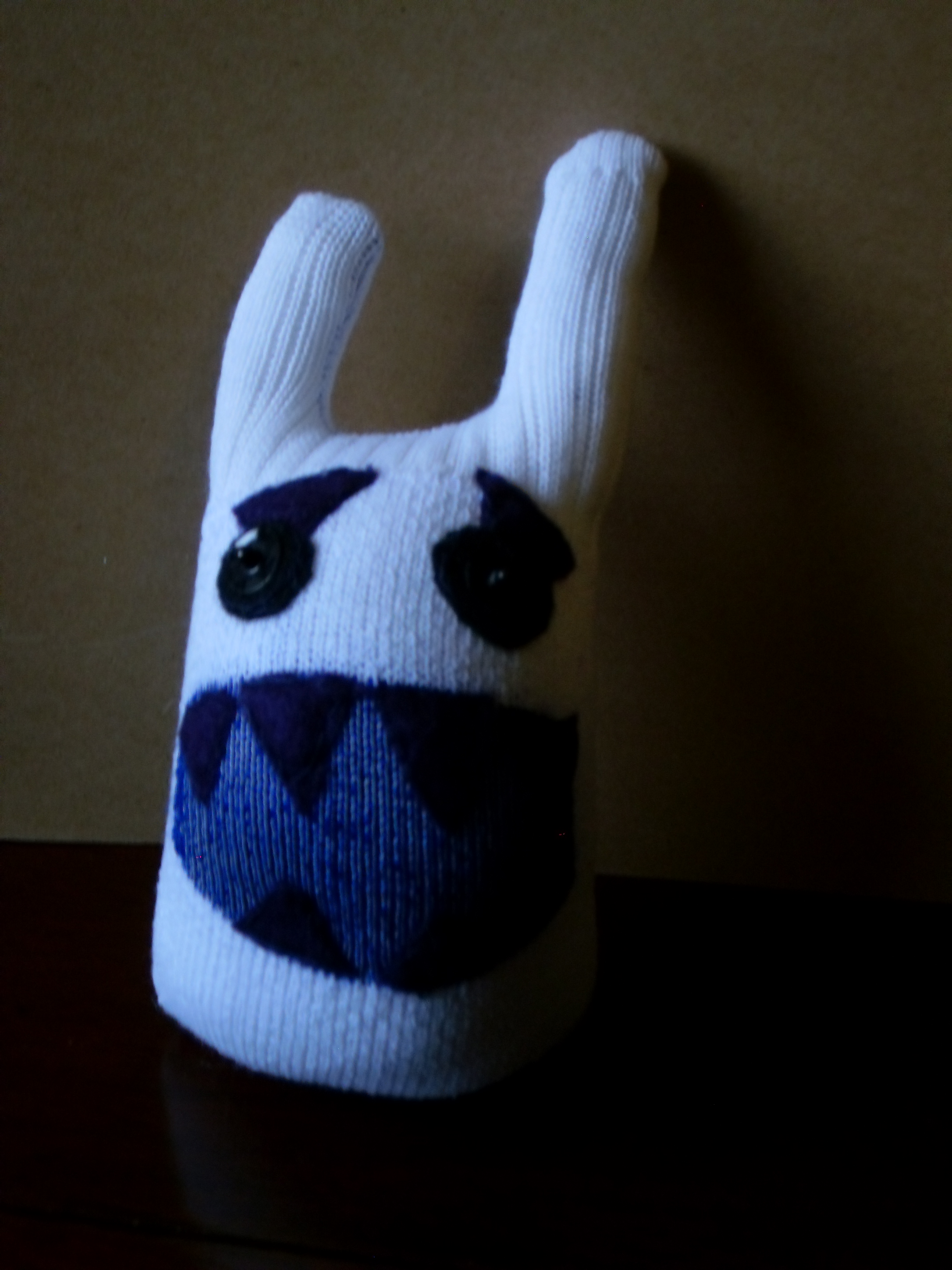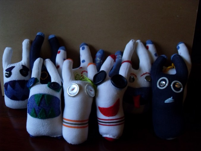 I’ve been experimenting with feet, hands and wings on my next monsters.  Sock monsters are much more forgiving than actual monsters, thank goodness.