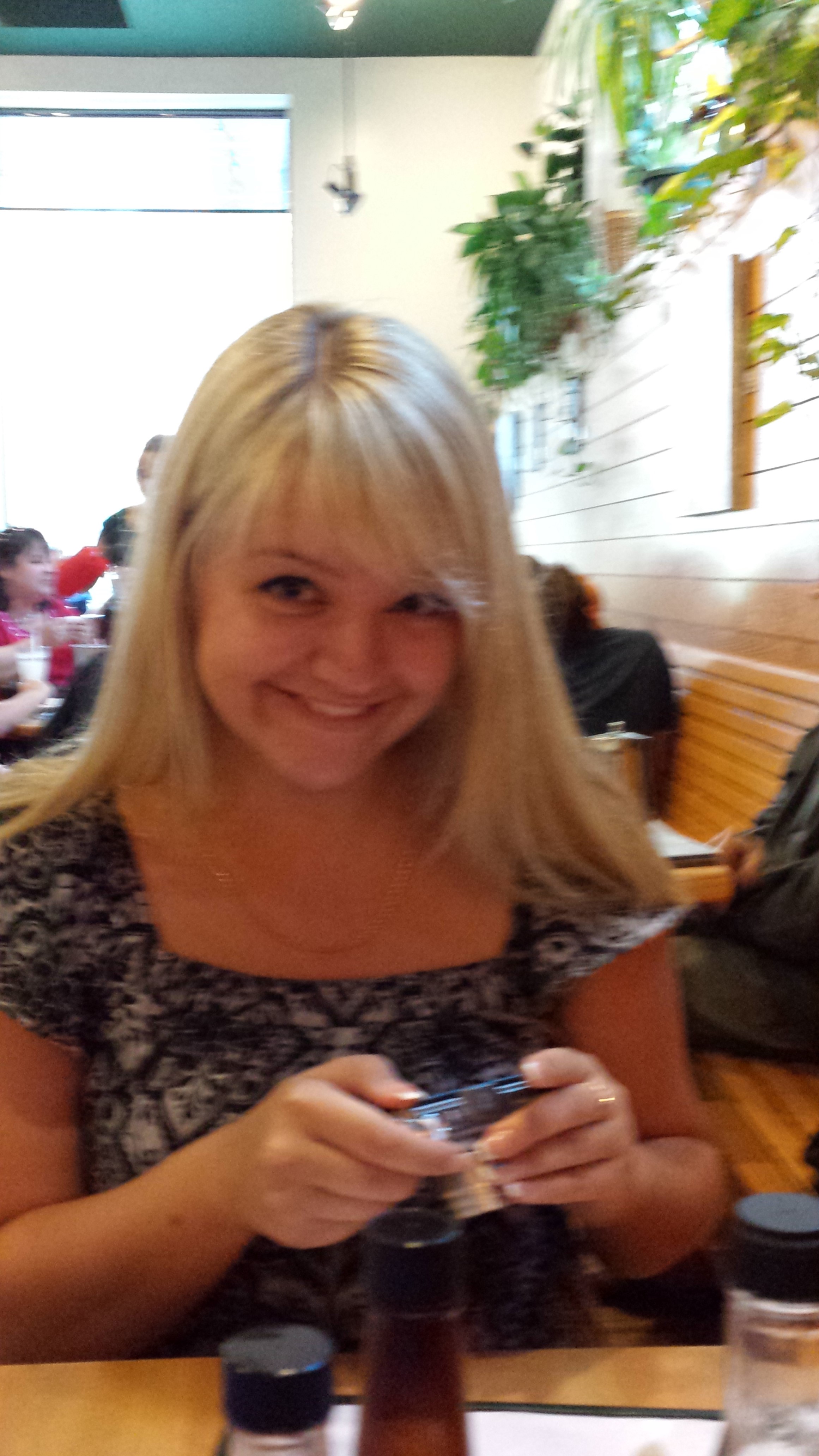 Our beloved Tanya, all grown up, enjoying one of our favorite restaurants.