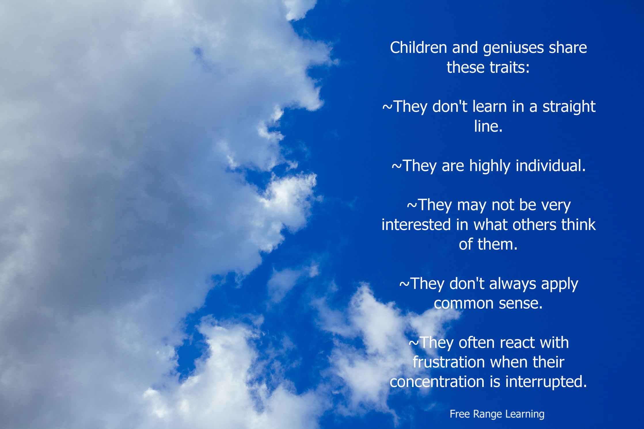 We must leave ample space for these gifts to unfold. This takes time and understanding. The alternative deprives not only the child, it also deprives our world of what that child might become.