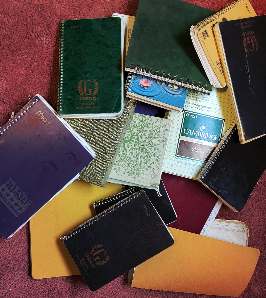 All this time I hung on to a stack of notebooks filled with dialogue, character sketches, drawn and re-drawn place maps, plot development notes, and other fiction vitals which I never even got around to typing into my works-in-progress files. Or, more accurately, works no longer in progress. I flipped through those notebooks today while reorganizing (which I was doing to avoid an actual writing deadline) and admitted to myself my half-written novels are dead. They’ve been dead for a very long time.